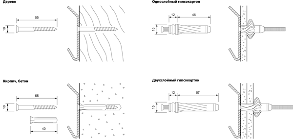 - выбираем крепеж, в зависимости от материала стены;