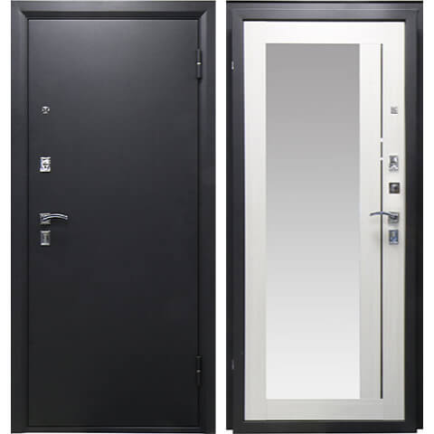 Входная дверь Рефлект покрыта износостойкой полимерно-порошковой краской имеет два контура уплотнения, которые обеспечивает защиту от сквозняков и шума. Внутренняя сторона двери выполнена в виде царговой МДФ панели с зеркалом в различных цветовых вариациях, представленных в нашем каталоге.