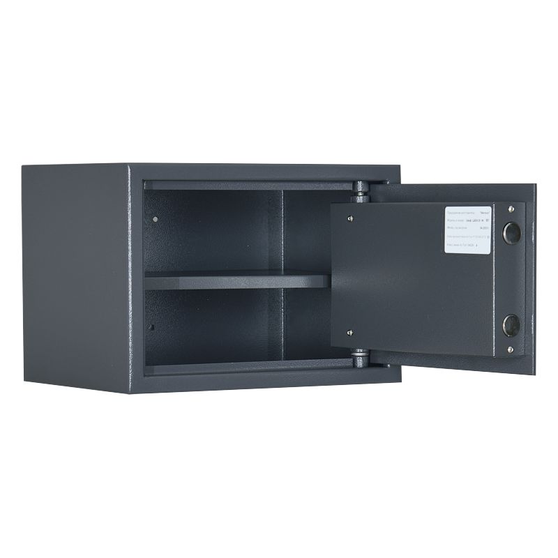 Сейф односекционный, оснащен съемной полкой. В двери установлен ключевой сувальдный замок "Border", класс А. Диаметр ригеля 24 мм.