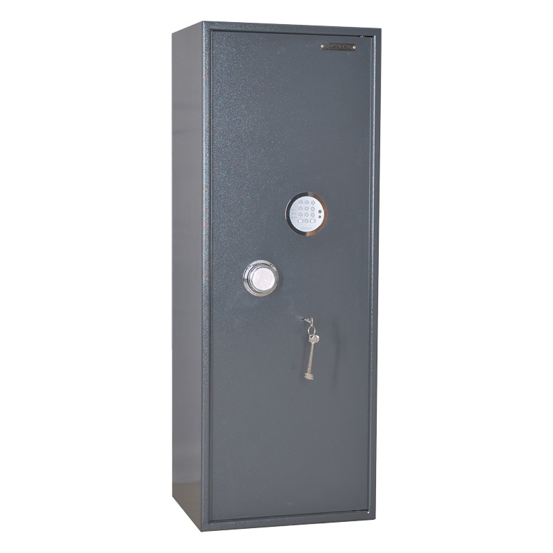 Шкаф односекционный, оснащен двумя съемными полками и трейзером. В двери установлен электронный замок с ригельной системой запирания и блокирующий замок. Диаметр ригеля 24 мм.