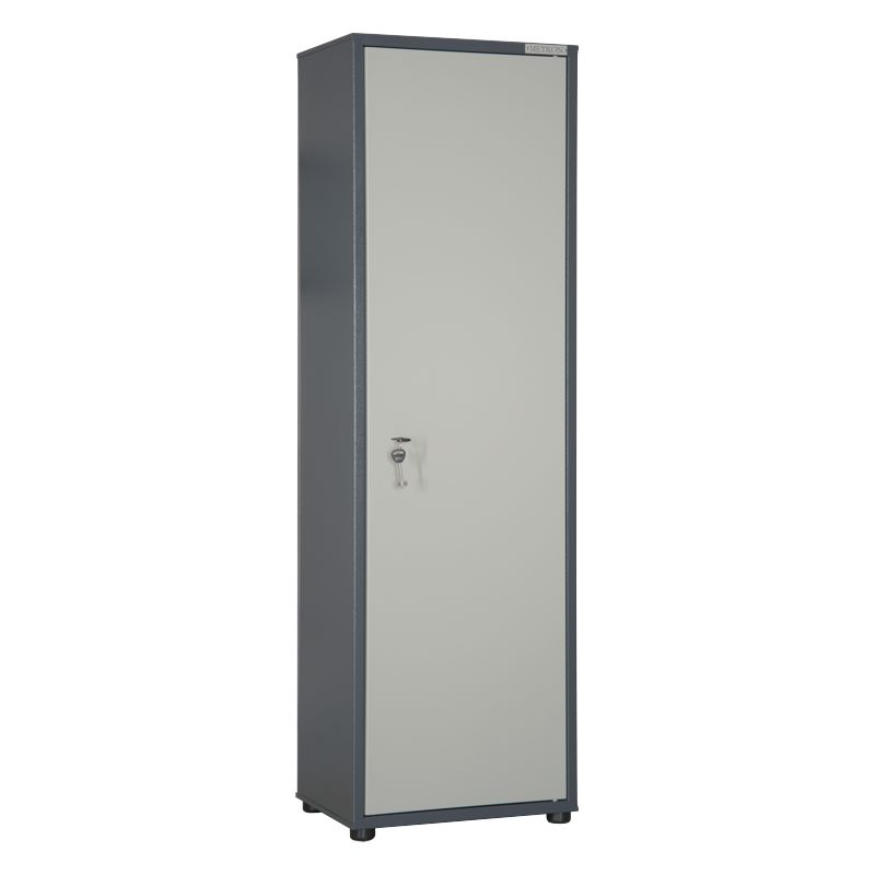 Шкаф односекционный, оснащен 3-мя съемными полками и трейзером. В двери установлен ключевой сувальдный замок.