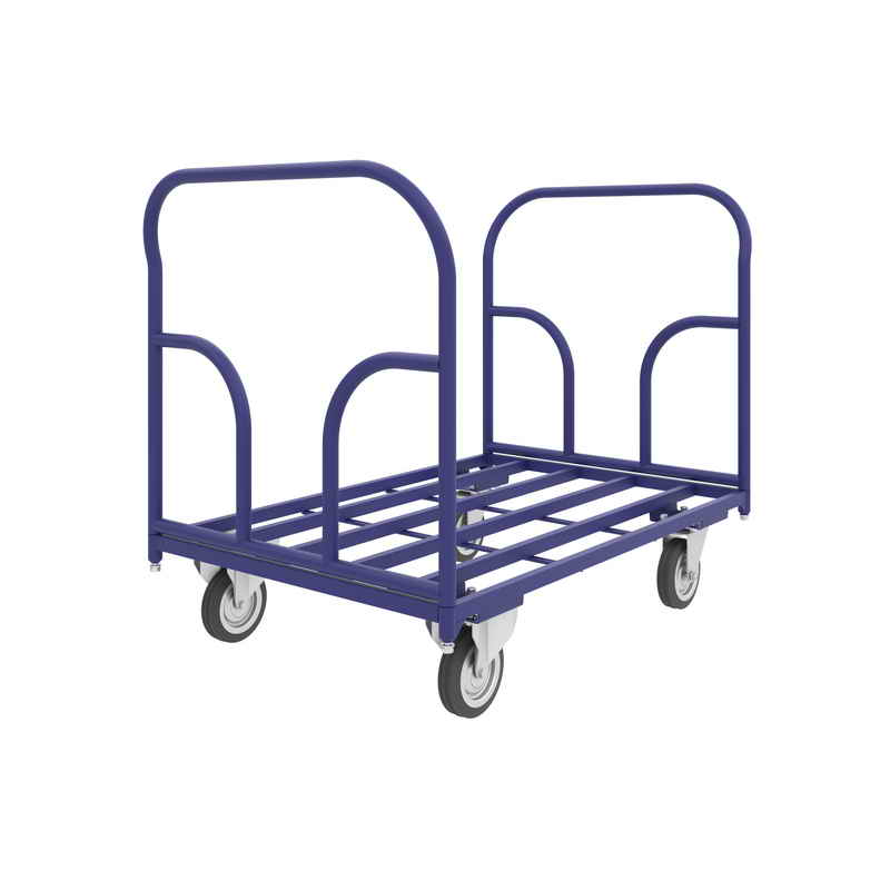 Тележка каркасная, металлическая с двумя ручками, грузоподъемностью до 550 кг распределенной нагрузки, в зависимости от выбранного диаметра платформенных, колесных опор. Служит для транспортировки несыпучих грузов. Удобна в эксплуатации тем, что наличие двух ручек позволяет эксплуатировать тележку по принципу "тяни-толкай", что особенно удобно в ограниченном пространстве небольших помещений и в узких проходах. Используется как в малых так и в крупных логистических системах.